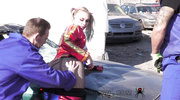 Косплейщица Харли Квинн решила устроить жаркий тройничок с двойным проникновением прямо на свалке. Блондинка соблазнила двух мужиков. Сначала она одновременно отсосала им члены, заглатывая их до тошноты. Затем она встала на четвереньки и приняла двойное проникновение: один трахал ее влажную вагину, а второй жестко долбил анал. Горячая штучка громко стонала от двойной порции глубокой долбежки.